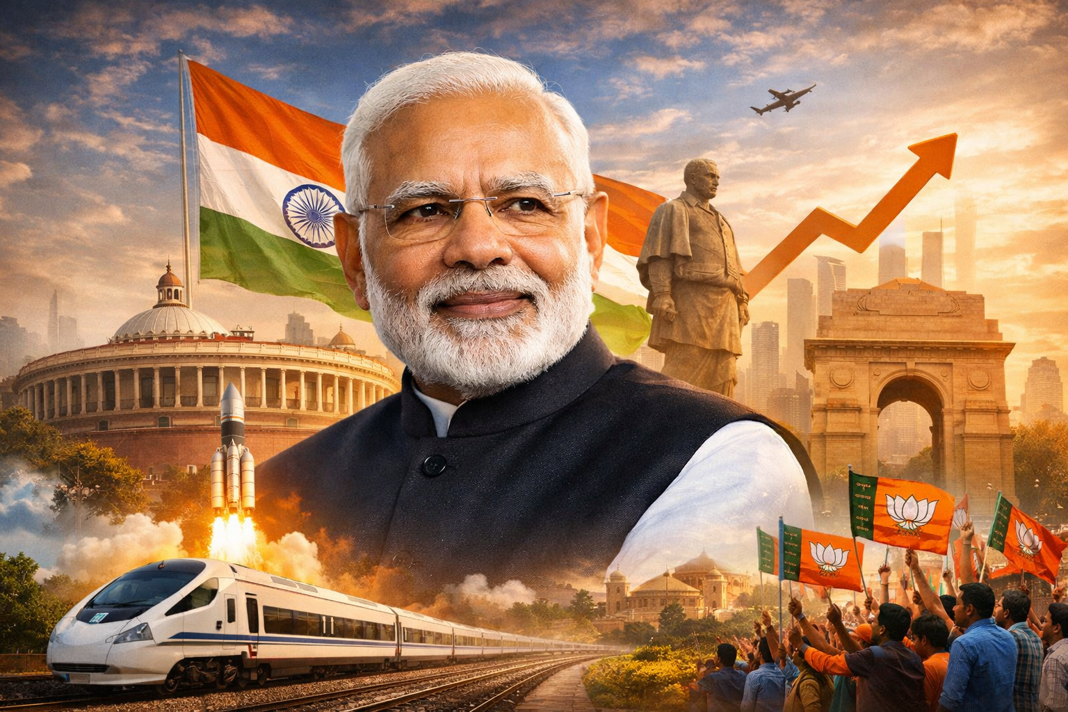 In 2014, Narendra Modi led the BJP to a historic victory in the general elections, becoming the Prime Minister of India. He was re-elected in 2019 with an even larger mandate, reflecting strong public support.
