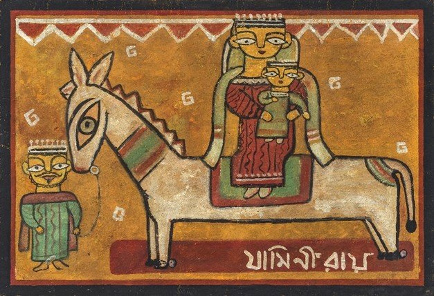 Lot 42 | Jamini Roy | Flight into Egypt | Tempera on board, n.d.